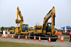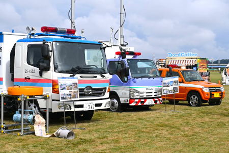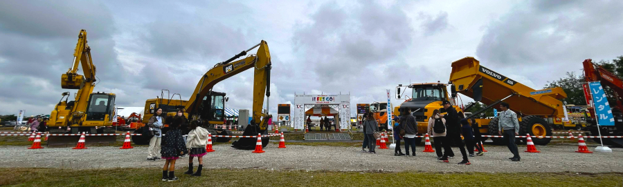 普段、間近でみることができない建設現場で働く重機を多数展示。実際に運転席にも乗れます!! |