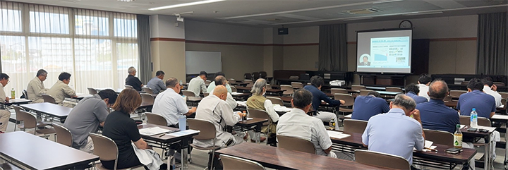 令和7年9月12日、栃木県建設産業会館(宇都宮市)において宇都宮・鹿沼支部員を対象にした、DVDセミナー「どこでも三次元で測る、覗いてみよう現場のDX など」を開催いたしました。
