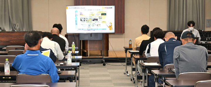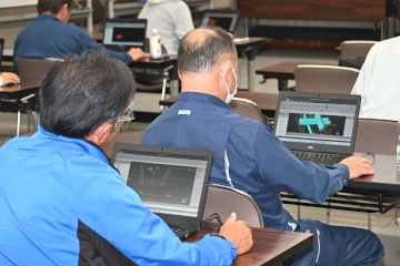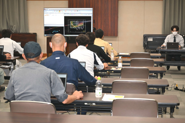 3次元設計データの作成等について、(株)建設システム 講師による説明が行われました。また、受講者が同社ソフト「SiTECH 3D・SiTE-STRUCTURE」など、パソコンを使用した一連の操作手順を習得。講師との質疑応答などが行われました。