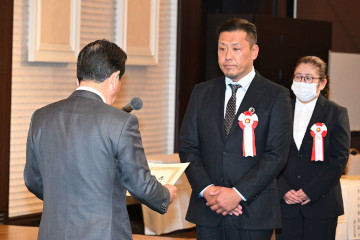 第1部では、栃木県建設雇用改善推進委員会 谷黒 克守 会長をはじめ栃木労働局 川口 秀人 局長などの挨拶後、建設雇用改善に積極的に取り組まれた事業主の皆様に対し、栃木県知事表彰および栃木県建設雇用改善推進委員会会長表彰の授与式が執り行われました。また、建設業退職金共済制度普及に対する協力者の皆様に対し、独立行政法人勤労者退職金共済機構理事長表彰伝達式も併せて執り行われました。