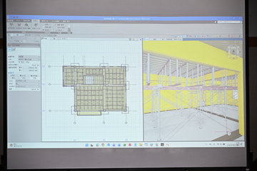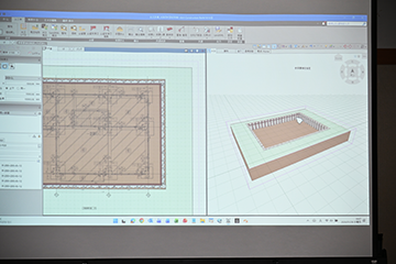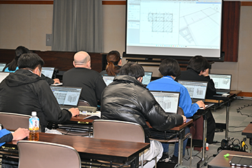BIMの基本的な概念や特徴について説明後、建築技術者向けとして「BIM活用事例紹介・CAD基本操作演習・モデル入力、活用」など、BIMを用いた施工プロセスの実践的な演習を行いました。