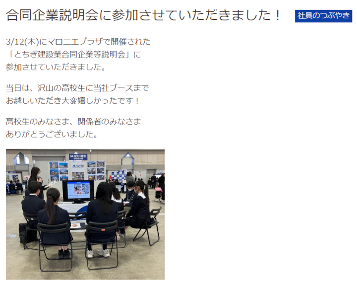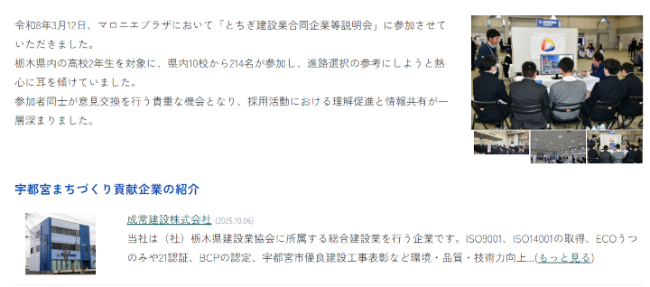 「とちぎ建設業合同企業等説明会」に関するSNS投稿や、会員企業などのホームページに掲載された情報を随時更新しています。