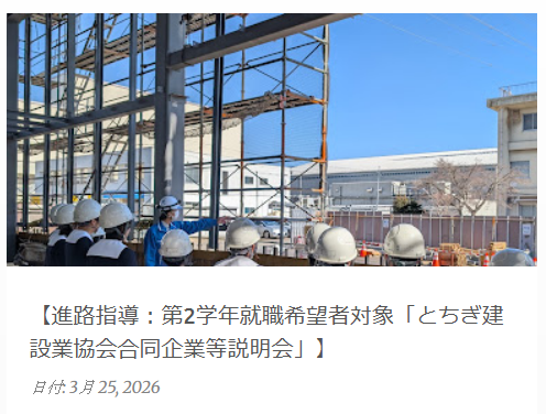 県協会 説明会に高校生230人https://t.co/9EqS21j0yi#下野新聞#栃木県建設業協会— 栃木県建設業協会 (@tochikenkyo) March 16, 2026