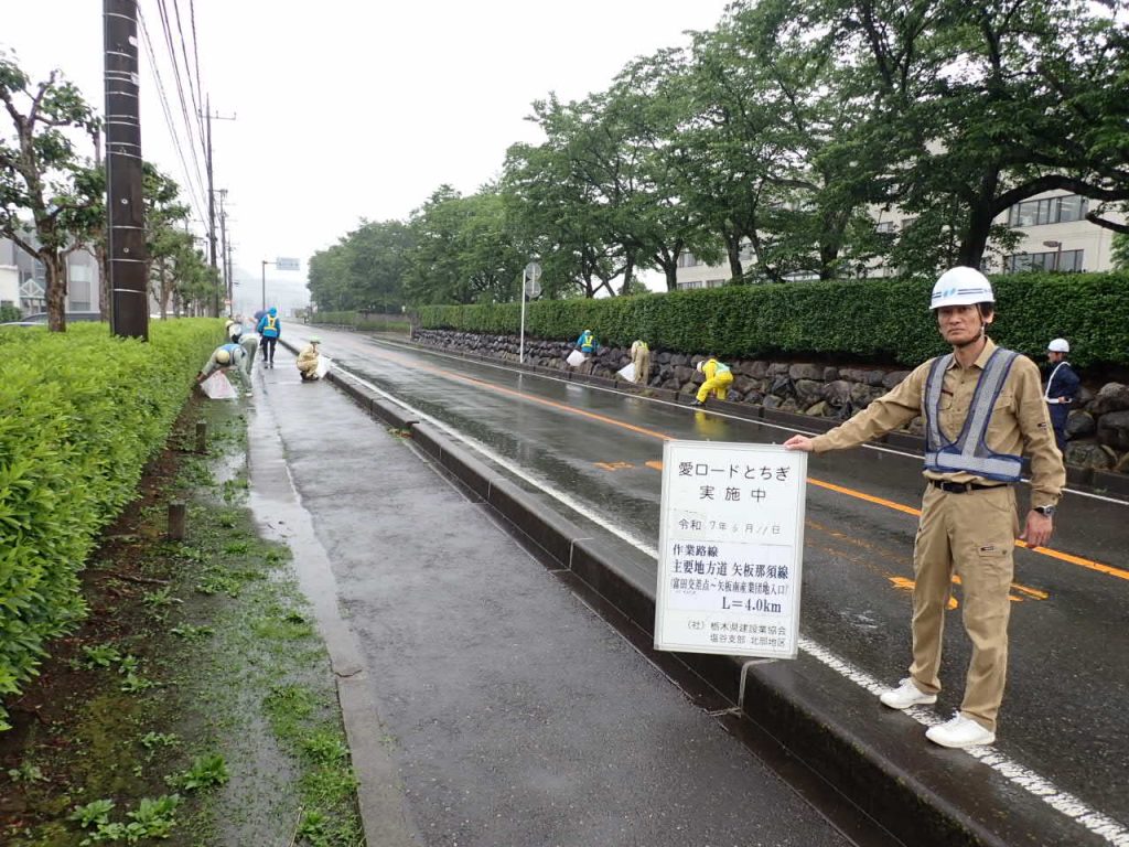 令和7年6月11日、(一社)栃木県建設業協会 塩谷支部による「愛ロード活動」を行いました。
