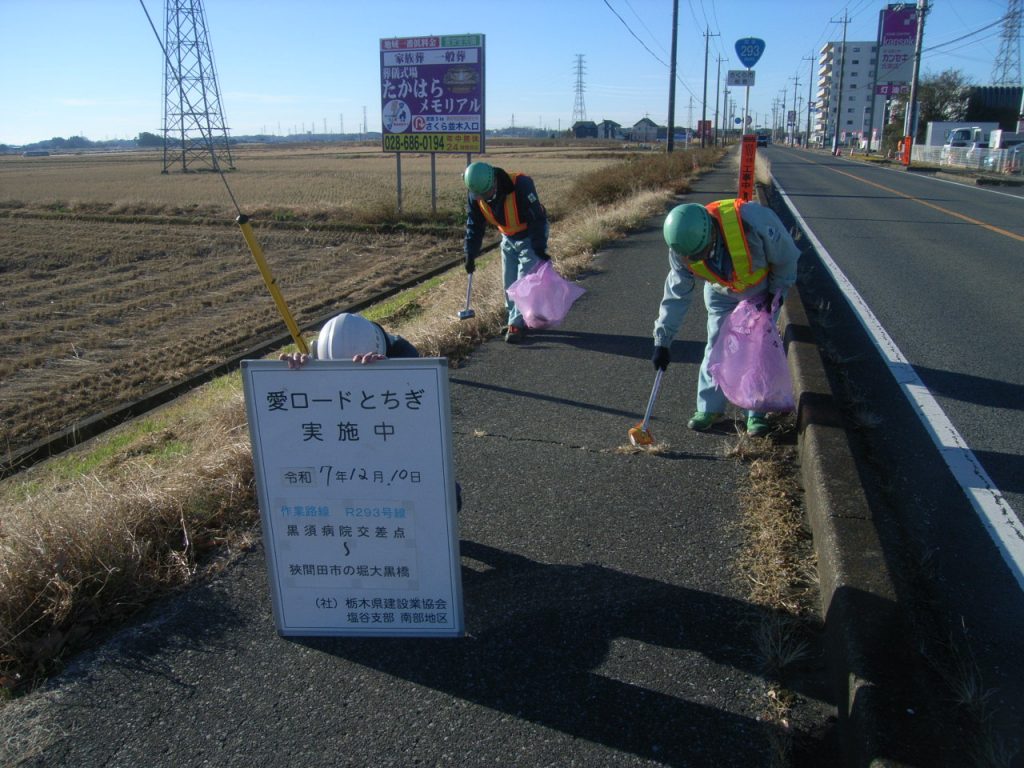 令和7年12月10日、(一社)栃木県建設業協会 塩谷支部による「愛ロード活動」を行いました。